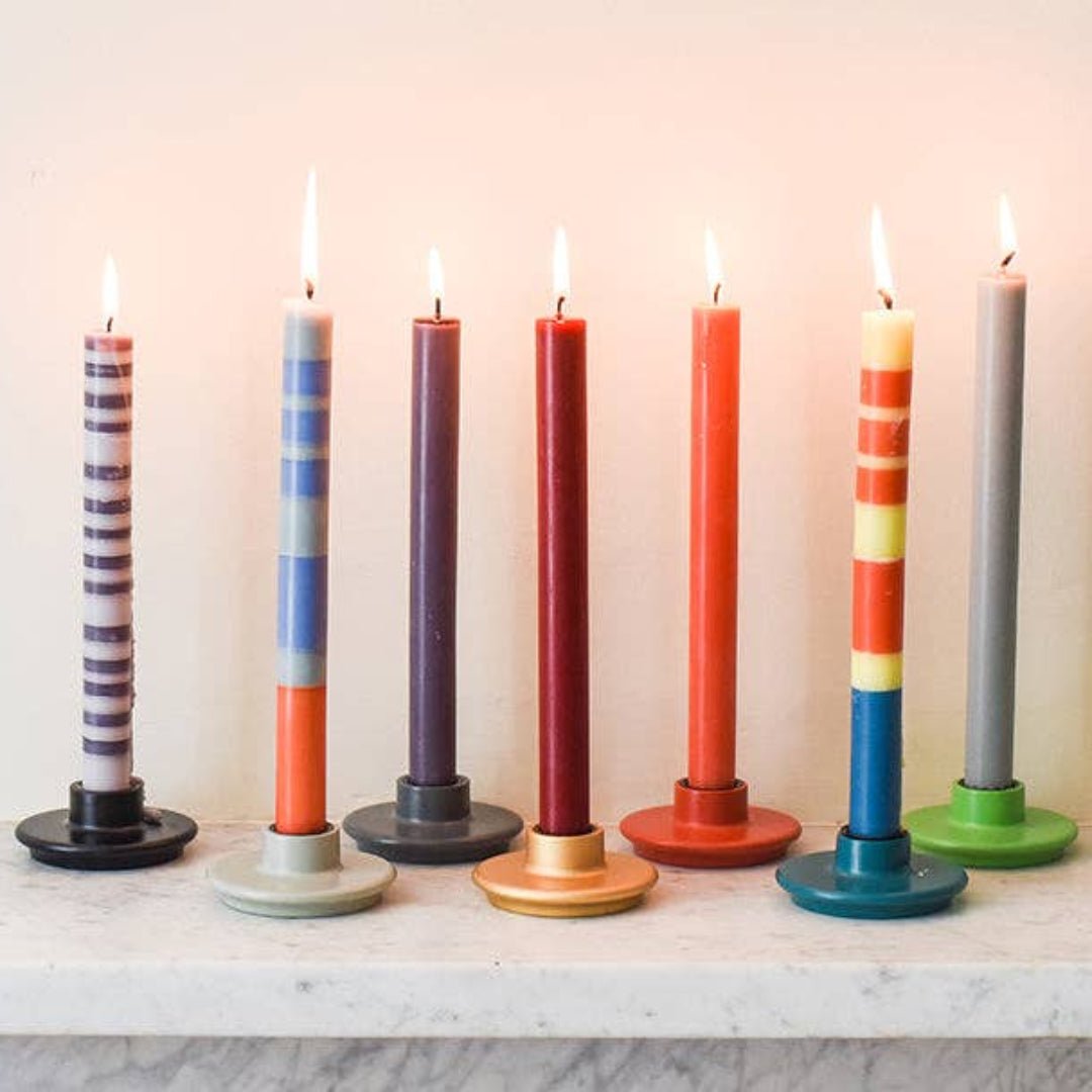 Our eco. fair trade dinner candles. hand poured in Indonesia in British Colour Standard Rust. Pack of 6 24.5cm Tall 8 hour burn time. with a tall clean flame. Non-drip Fair Trade